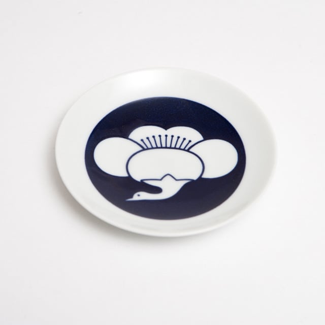 "古来より伝わる日本独自の伝統紋様をモダンにアレンジした「KIHARA」のKOMONシリーズ。鶴は長寿の象徴として人々に愛されてきました。春の訪れを感じさせる「梅」と「鶴」を合わせた紋様です。