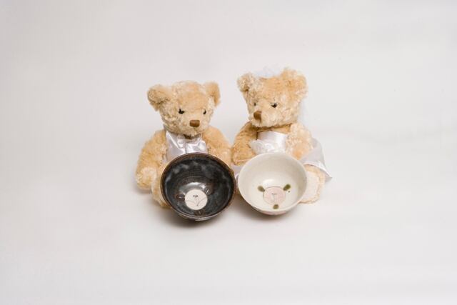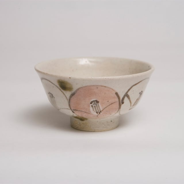 暖かみのある地に桃色と白の弥七田椿が気持ちを和ませてくれます。飯碗のなかにも、ピンクの椿の花が咲いています。「鼡志野椿 大碗」とセットでお使いいただけます。
