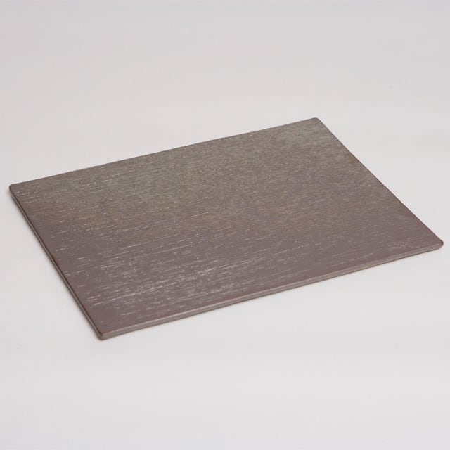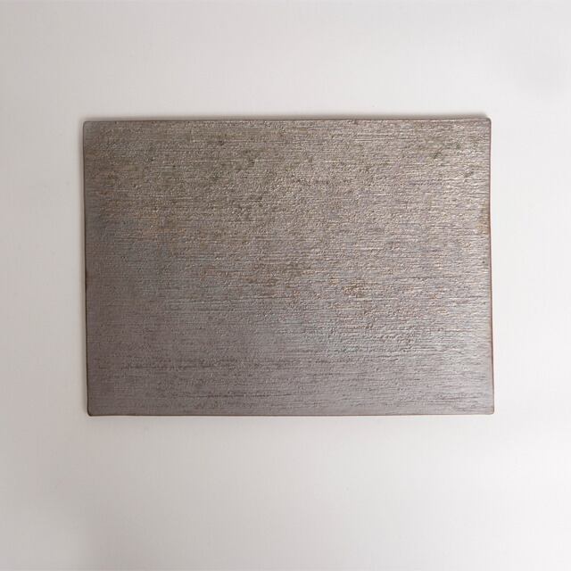 光沢感のある少しピンク色を帯びた色合いのフラット皿です。高級感があり、料理を上品に見せてくれます。 28.5×20.3×0.8cm