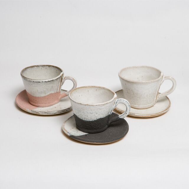 「なんかいい…」と少し懐かしくなる信楽焼のコーヒー碗です。優しい色合いでリラックスしたいときにぴったりの商品です。白、黒、ピンクの3色ご用意しました。お客様が来たときにもお出ししてもいいかもしれませんね。