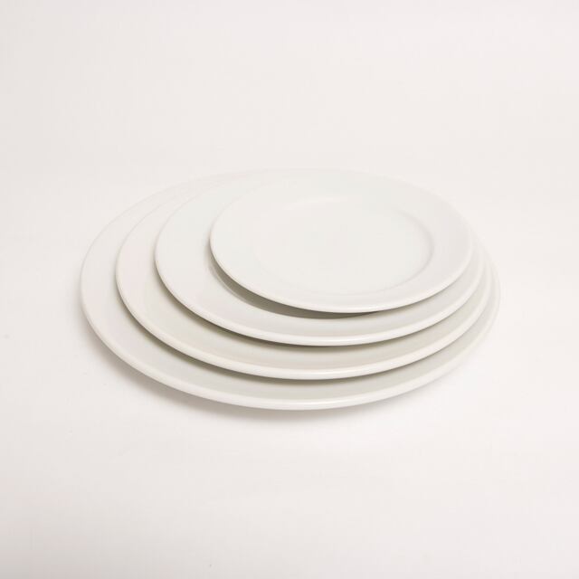 シンプルな白いお皿です。こちらはレストランやカフェでも使われているシリーズになります。4種類の丸皿と2種類のプラターをご用意しました。また、カラーもホワイト、黒マット、アメ(ブラウン)があります。統一感のあるお皿を揃えてみてはいかがでしょうか。