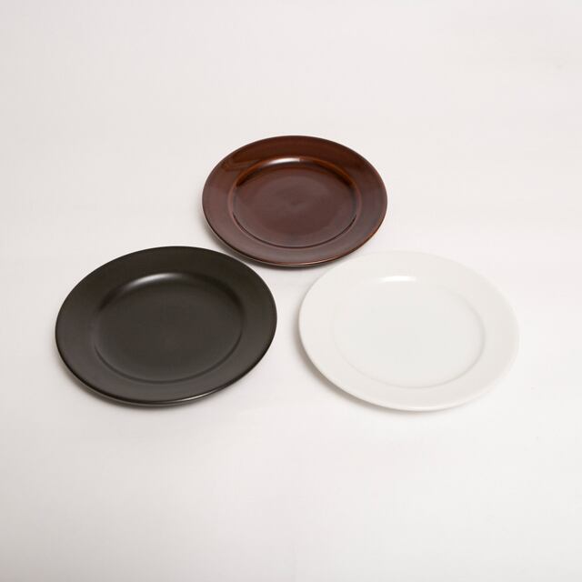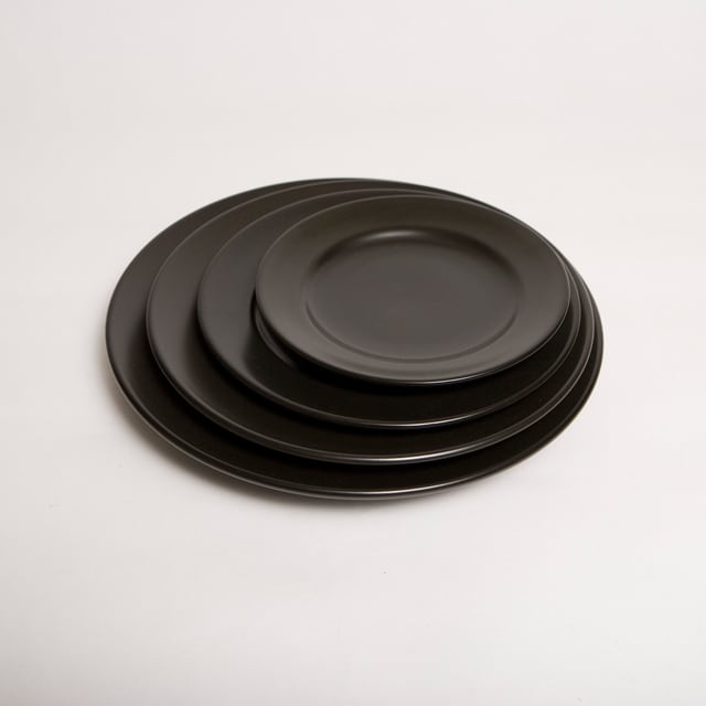 黒の落ち着きのあるマットのお皿です。こちらはレストランやカフェでも使われているシリーズになります。4種類の丸皿と2種類のプラターをご用意しました。また、カラーはホワイト、黒マット、アメ(ブラウン)の3種類あります。統一感のあるお皿を揃えてみてはいかがでしょうか。